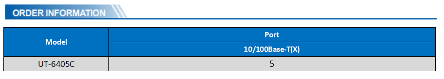 UT-6405C is a 5-port 100-M unmanaged Ethernet switch that provides positive and negative AC/DC input protection to prevent burnout of the instrument. It has a compact design and supports industry standard DIN-rail mounting, so it is easy to install in any industrial network application.