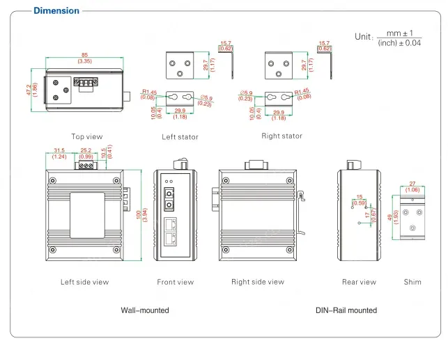 Dimension (W x H x D): 100mm x 85mm x 47.2mm