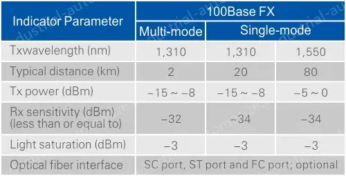 Fiber port: 1x 100Base-FX port(with optional SC, ST, FC & LC)